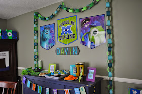 We chose a Monsters Inc/University theme because Davin took over Brenna's obsession with them not long before his birthday. It was such a fun theme - and easy because there were actually some Monsters things in store to buy. (Not so much the case with Peter Pan!)